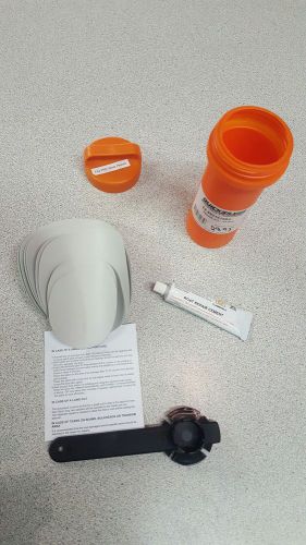 Features grey PVC fabric, umbrella valve in a waterproof plastic container and cement.